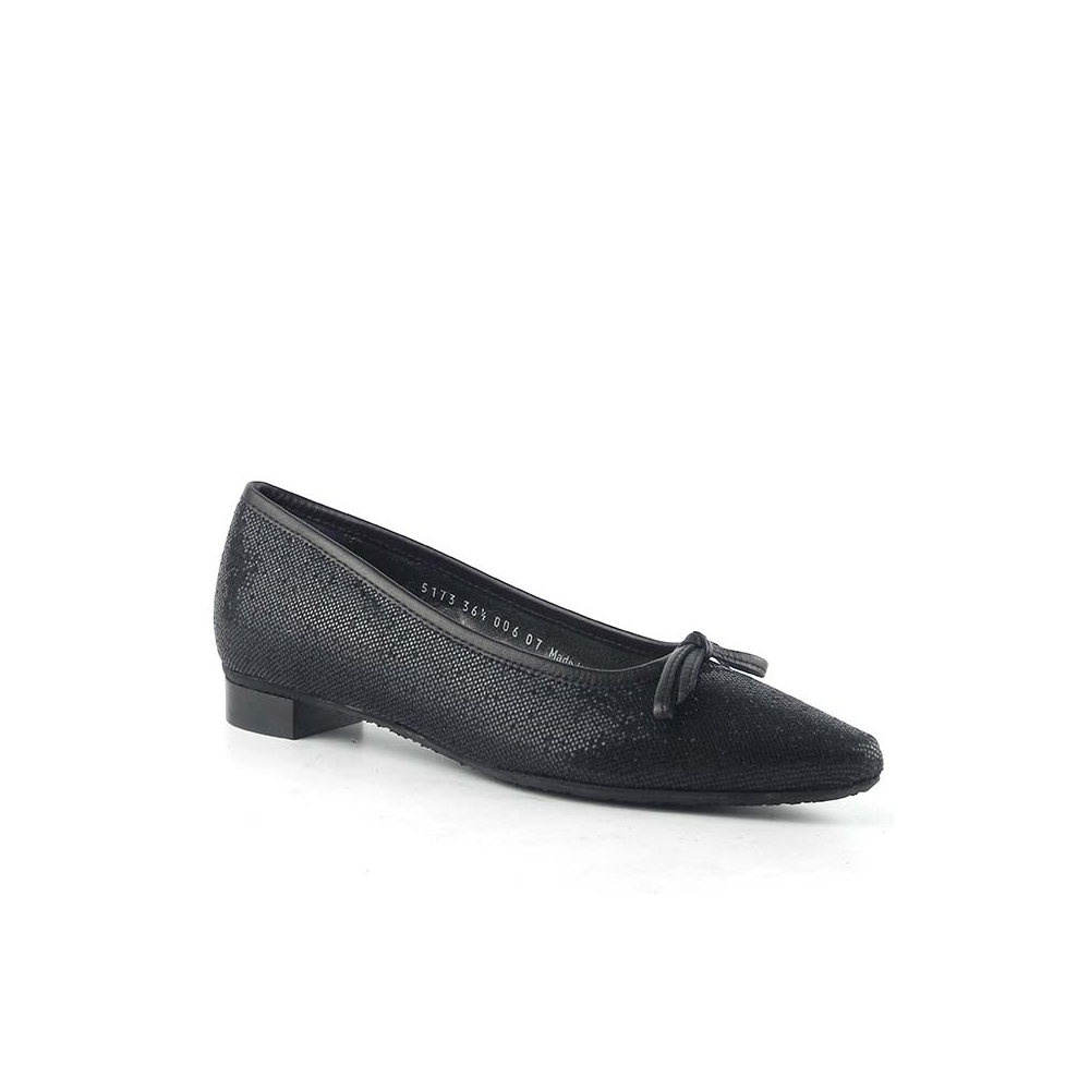 Balerini de dama cu sclipici, interior din piele naturala, funda design, varf ascutit, brant cu talonet. Culoare: negru |