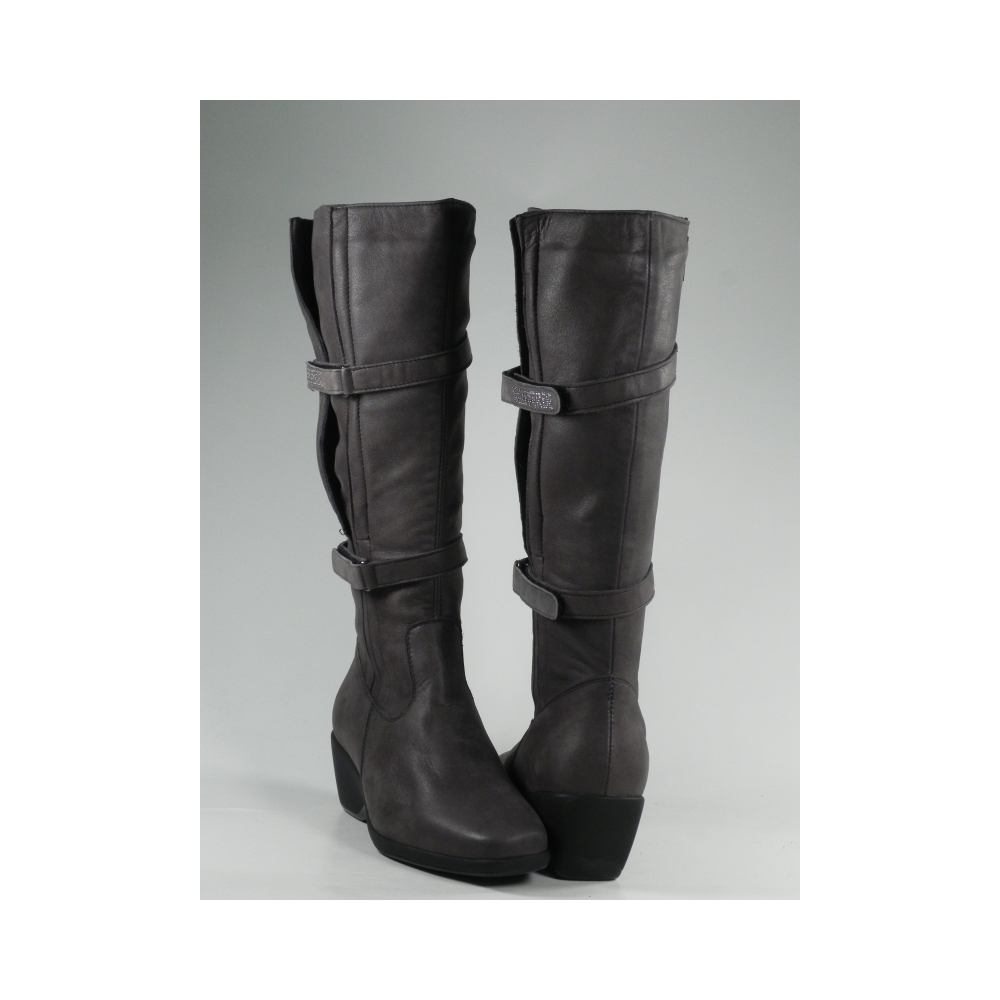 cizme dama din piele BOX - fermoar - arici - gri - captusite-polar