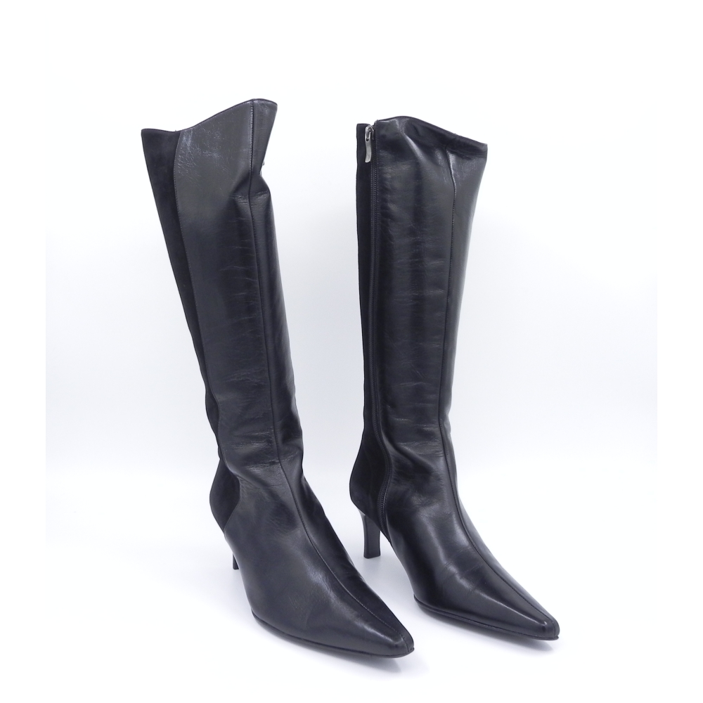 Cizme dama elegante din piele naturala si piele intoarsa Kaelya negru