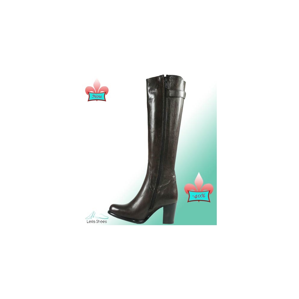 Cizme dama smart casual, lungi, fabricate 100% in Italia, la exterior din piele BOX, de culoare maro brun, iar in interior din piele premium de culoare maro.Cizmele sunt prevazute cu toc patrat de 6cm, varf semi-rotund si cu fermoar pe partea lateral interioara ca sistem de inchidere.Pe partea din spate cizmele sunt prevazute cu o banda de elastic pentru un plus de lejeritate si o curelusa cu capse pentru maximum desiguranta.Talpa flexibila si rezistenta, confectionata din cauciuc de inalta calitate ofera in interior brant cu talonet din piele pentru un plus de confort. Intre talpa si brantul cu talonet, se afla o perna de aer, care prin zdrobirea si revenirea elastica ulterioara, indeplineste functia de pompa, iar in contact cu piciorul si terenul, asigura un masaj benefic. |