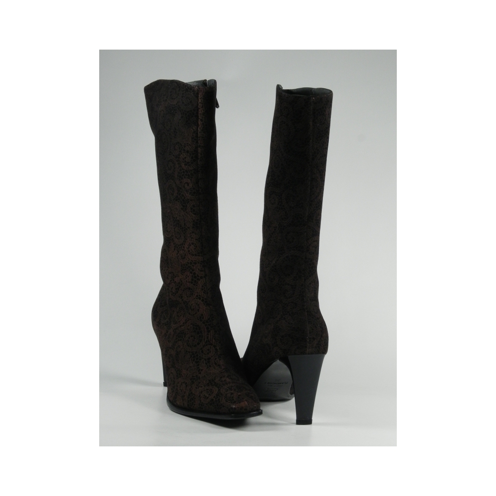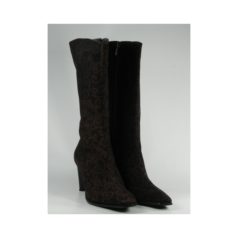-Designul cizmelor este unul chic, cu fata din piele intoarsa cu broderie. Au varful ascutit, talpa subtire si inchidere cu fermoar pe interior. Potrivite unei tinute cu fusta sau rochie, pentru a pune in evidenta eleganta modelului.