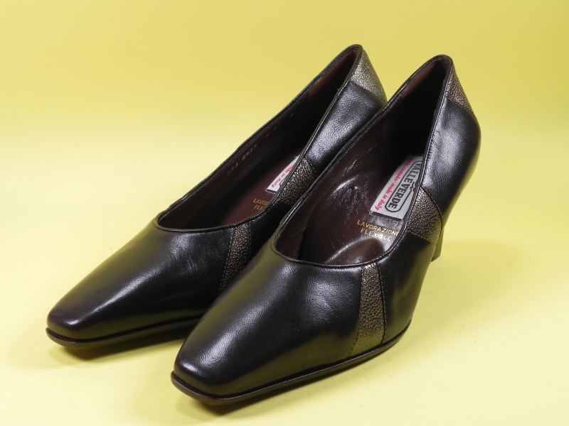 Pantofi confectionati din piele naturala la exterior si interior, de foarte buna calitate, de culoare maro-brun, cu varf in forma de patrat si decorat cu un model bronz/vintige pe laterale pentru a sublinia aspectul robust al stilului elegant. Intre talpa si brantul cu talonet, se afla o perna de aer, care prin zdrobirea si revenirea elastica ulterioara, indeplineste functia de pompa, iar in contact cu piciorul si terenul, asigura un masaj benefic. 100% made in Italia.