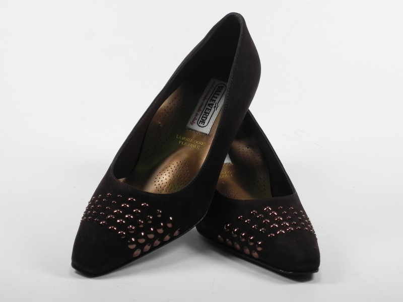 | Pantofi dama clasici si eleganti cu capse metalice decorative, fabricati 100% in Italia, la exterior din piele intoarsa de culoare maro, iar in interior din piele BOX de culoare bronzo. Pantofii au varful semi-patrat, iar tocul triunghiular masoara 6cm .Talpa flexibila si rezistenta, confectionata din piele ofera in interior brant cu talonet din piele pentru un plus de confort. Intre talpa si brantul cu talonet, se afla o perna de aer, care prin zdrobirea si revenirea elastica ulterioara, indeplineste functia de pompa, iar in contact cu piciorul si terenul, asigura un masaj benefic. |