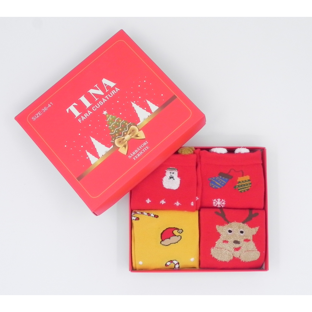 Set de 4 perechi de șosete cu model de Crăciun – confort, culoare și spirit festiv! Tina fara cusatura